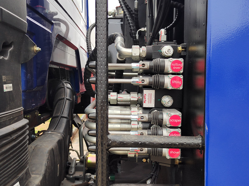 ♦Η πίσω πόρτα ανοίγει με υδραυλικό κύλινδρο, εξασφαλίζοντας ομαλή και χωρίς υπολείμματα εκκένωση των αποβλήτων.