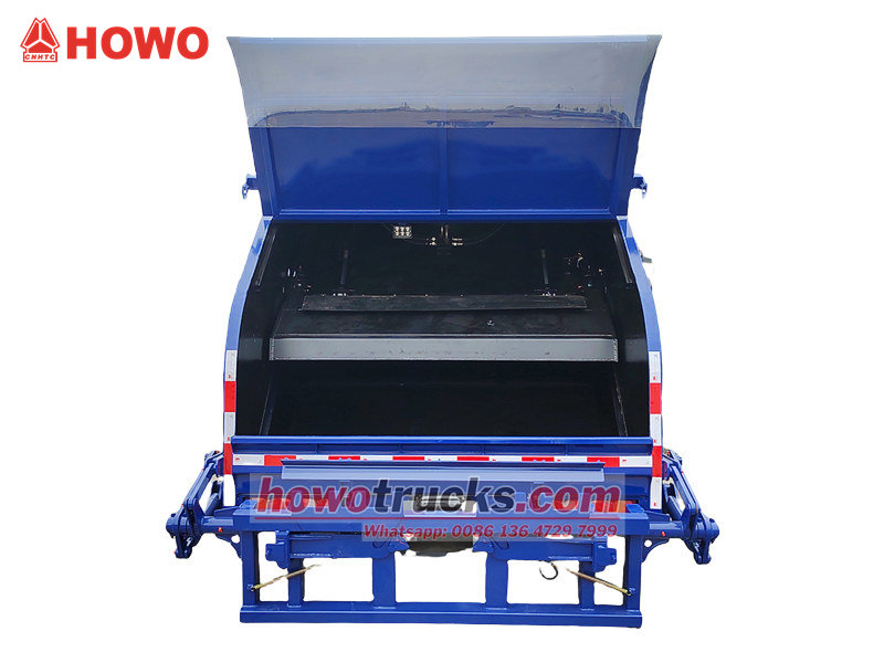Ο κάδος απορριμμάτων είναι κατασκευασμένος από χαλύβδινη πλάκα υψηλής αντοχής, ανθεκτική στις καιρικές συνθήκες, με πλευρικά πάνελ που χρησιμοποιούν μονοκόμματη διαδικασία χύτευσης. Το διαμέρισμα έχει εξαιρετική απόδοση στεγανοποίησης, αποτρέποντας τις διαρροές λυμάτων και την εξάπλωση οσμών, καθιστώντας το φιλικό προς το περιβάλλον και αποτελεσματικό. Απορριμματοφόρο πίσω συμπύκνωσης Howo είναι κατάλληλο για κεντρική συλλογή και μεταφορά οικιακών απορριμμάτων σε πόλεις, κατοικημένες περιοχές, εργοστάσια και άλλες τοποθεσίες. Είναι εύκολο στη λειτουργία, ασφαλές και αξιόπιστο.