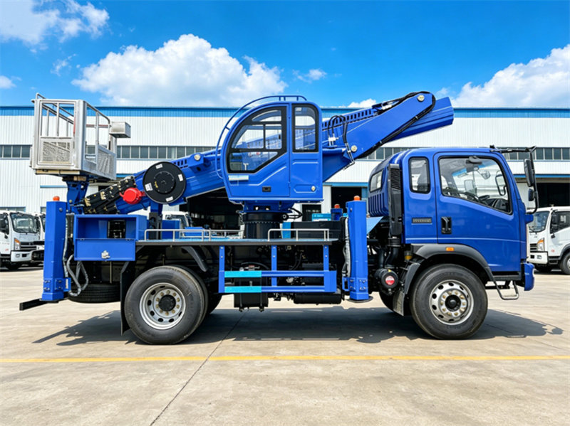 As a professional engineering vehicle, the Howo 18-meter articulated platform aerial truck is designed to combine reliable technical performance with comprehensive safety protection, making it suitable for various high-altitude operation scenarios. In terms of basic chassis and power configuration, the truck adopts the Howo all-wheel drive chassis, which lays a solid foundation for its flexible operation in complex road conditions. Equipped with an ISF3.8S3154 engine, it can output a maximum power of 154 horsepower.