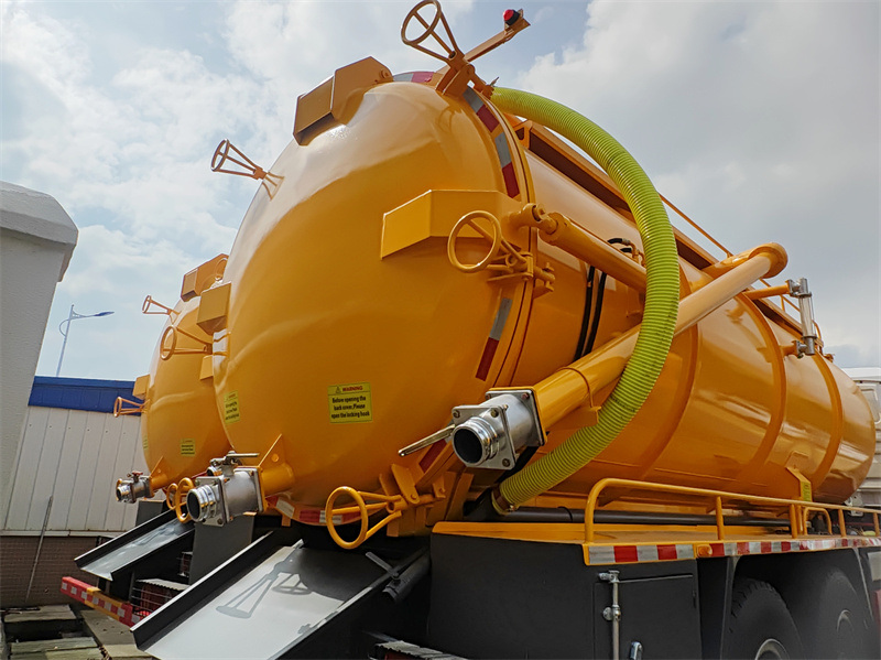 2x13000Ο Φορτηγό καθαρισμού εμπορικών αποχετεύσεων Howo 20 cbm είναι ένα αποτελεσματικό και αξιόπιστο όχημα σχεδιασμένο για αστική αποχέτευση και επεξεργασία βιομηχανικών λυμάτων. Διαθέτει δεξαμενή αναρρόφησης 20 κυβικών μέτρων. Η βασική λειτουργική του ικανότητα προέρχεται από την αντλία κενού κυκλοφορίας νερού 2BEA-204, της οποίας ο υψηλός ρυθμός αναρρόφησης των 20 m³/min παράγει τεράστια ισχύ αναρρόφησης, επιτρέποντας την ταχεία εξαγωγή παχύρρευστων αποβλήτων. Το όχημα είναι πλήρως εξοπλισμένο με ενσωματωμένο γυαλί παρατήρησης, μανόμετρο κενού και δευτερεύον φίλτρο για παρακολούθηση και προστασία. Η βαλβίδα ελέγχου στην αριστερή πλευρά ελέγχει κεντρικά το άνοιγμα και το κλείσιμο της πίσω πόρτας και την ανύψωση και το κατέβασμα της δεξαμενής, εξασφαλίζοντας ασφαλή και άνετη λειτουργία. Εξοπλισμένο με σωλήνα αποχέτευσης, σκάλα και εργαλειοθήκη, χρησιμοποιείται ευρέως για εργασίες αναρρόφησης, απομάκρυνσης και απόρριψης σε δημοτικά δίκτυα σωληνώσεων, οικιακές σηπτικές δεξαμενές και βιομηχανικές δεξαμενές λυμάτων.