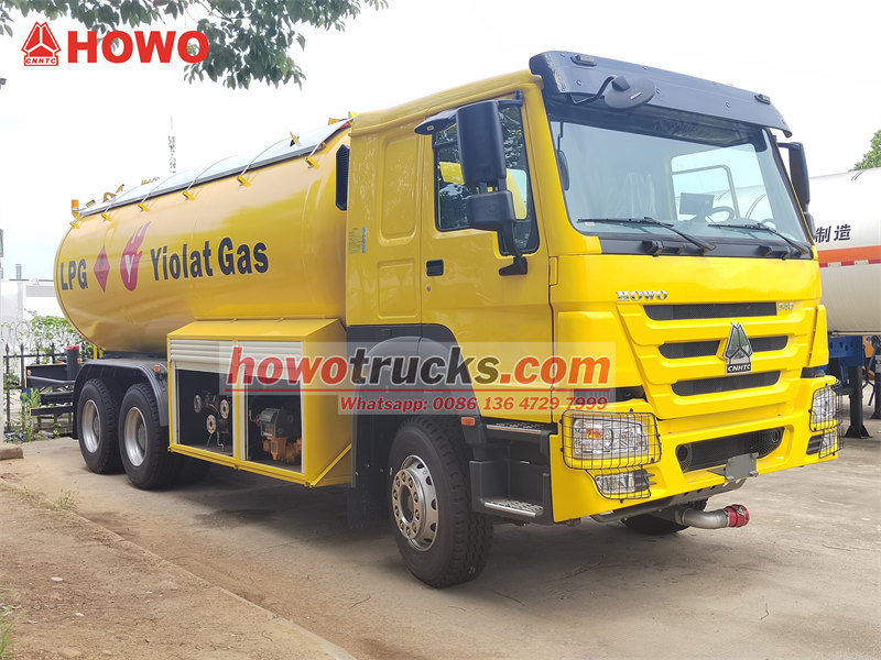 18000Το φορτηγό ανεφοδιασμού LPG HOWO 20.000 λίτρων είναι ένα βυτιοφόρο υψηλής πίεσης ειδικά σχεδιασμένο για τη μεταφορά υγραερίου. Είναι κατασκευασμένο σε πλαίσιο HOWO 6x4, με κινητήρα 340 ίππων που συμμορφώνεται με τα πρότυπα εκπομπών Euro III. Το αμάξωμα του βυτιοφόρου είναι κατασκευασμένο από χάλυβα Q345R με ακραίες πλάκες πάχους 12 mm, με χωρητικότητα 20.000 λίτρα. Υποβάλλεται σε αμμοβολή, αφαίρεση σκουριάς και πολλαπλές αντιδιαβρωτικές επεξεργασίες για να εξασφαλιστεί μακροχρόνια αντοχή.