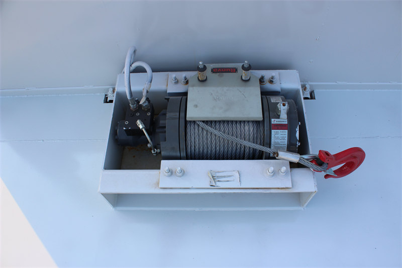 4. Αποδοτική αυτοφόρτωση και εκφόρτωση: Διαθέτει υδραυλικό βαρούλκο 8 τόνων, υδραυλική ράμπα 2 μέτρων και μπροστινό υδραυλικό πόδι στήριξης 25 τόνων, επιτρέποντας την ανεξάρτητη φόρτωση και εκφόρτωση εξοπλισμού χωρίς να βασίζεστε σε πρόσθετα μηχανήματα.