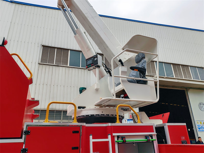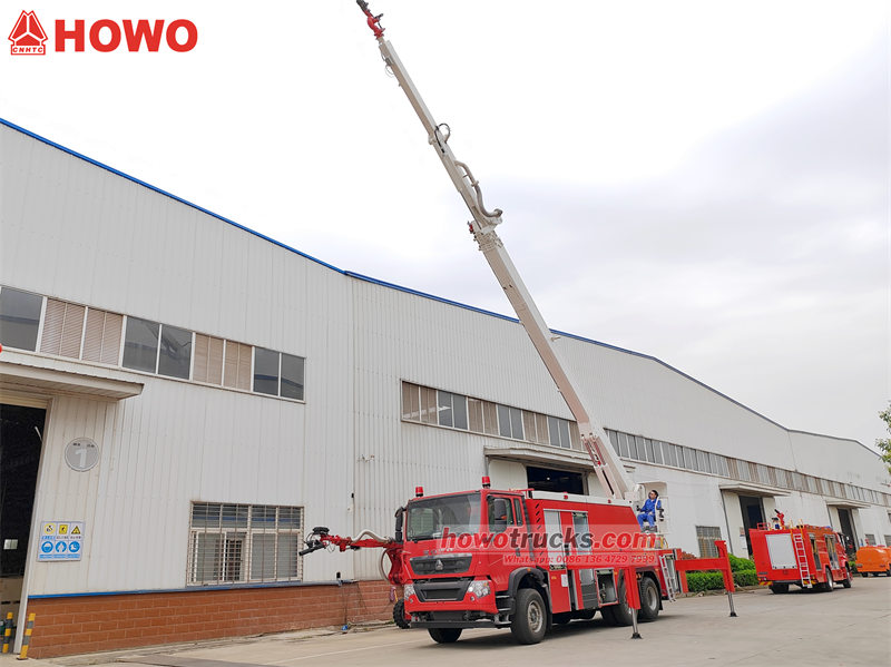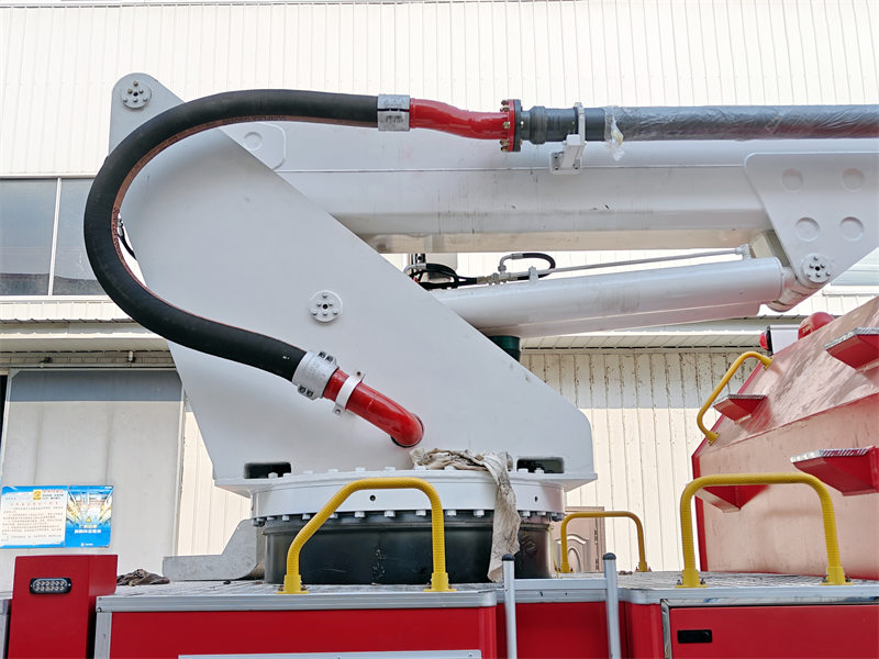 3. Το πυροσβεστικό όχημα Howo υιοθετεί δομή πτυσσόμενου βραχίονα. Ο κάτω βραχίονας μπορεί να ανυψωθεί εντός 80° και ο κάτω βραχίονας και ο άνω βραχίονας μπορούν να ανυψωθούν εντός 150°. Η διατομή του βραχίονα υιοθετεί τετράπλευρη δομή τύπου κουτιού, η οποία είναι συγκολλημένη με χάλυβα υψηλής αντοχής.