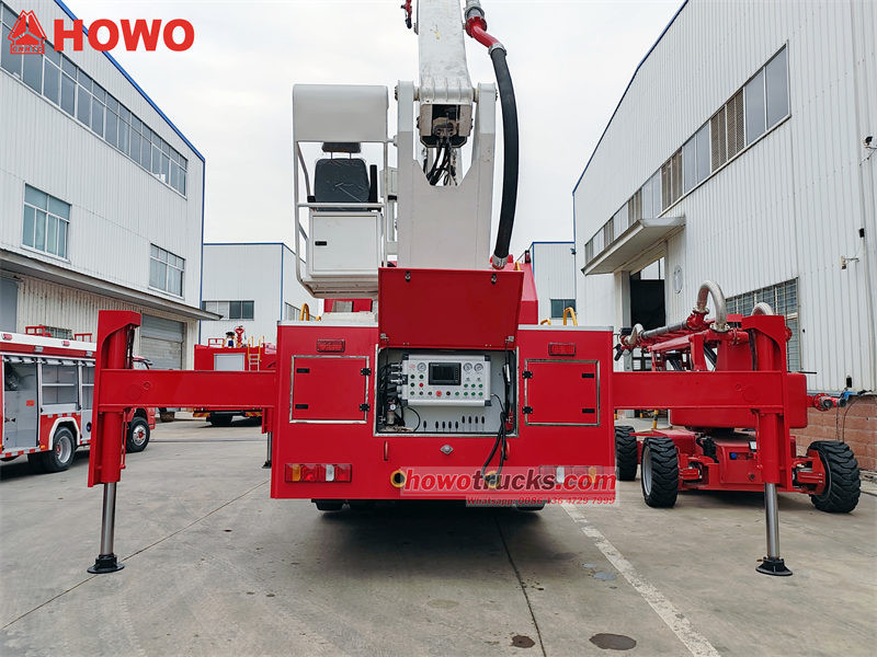 Χάουο 32μ υψηλή ανύψωσηerνερό φωτιάςrφορτηγό έχει δύο σημεία λειτουργίας: ένα στο πίσω μέροςπίνακας ελέγχουτου πυροσβεστικού οχήματος , το άλλο για τη σύνδεση ενσύρματου τηλεχειριστηρίου.