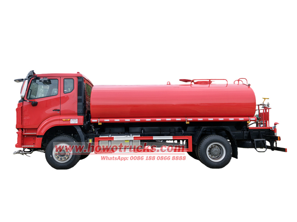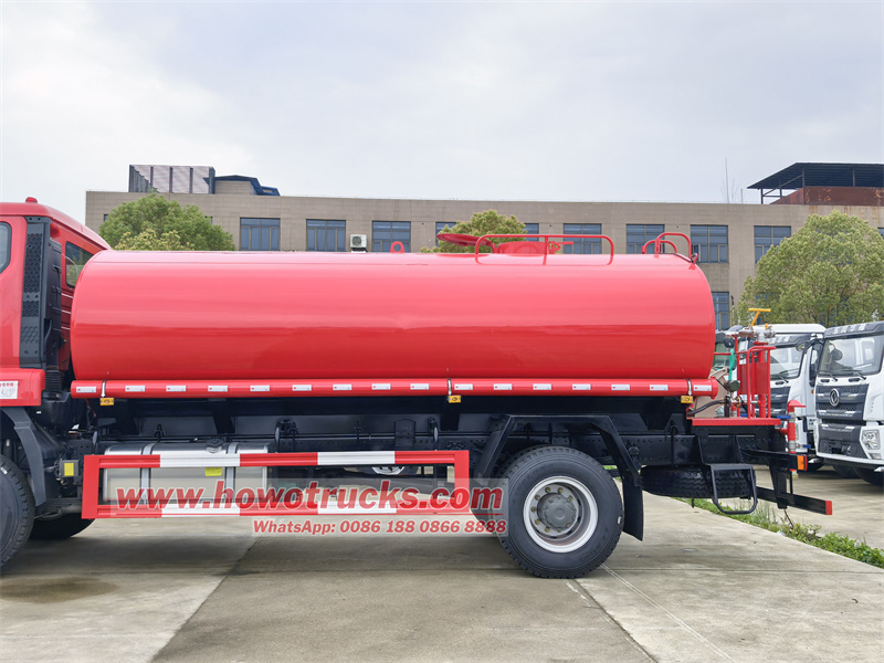 11500The Howo 4x2 drive water delivery tanker bowser uses a Sinotruk NX series chassis and is specifically developed for the right-hand drive market. The vehicle is equipped with a Sinotruk high-efficiency powertrain and a 12-cubic-meter large-capacity carbon steel tank, a high-flow water pump, and features front spray, rear side spray, high-pressure water gun, and hose reel. It can be used for road washing, dust suppression, garden irrigation, and emergency firefighting.