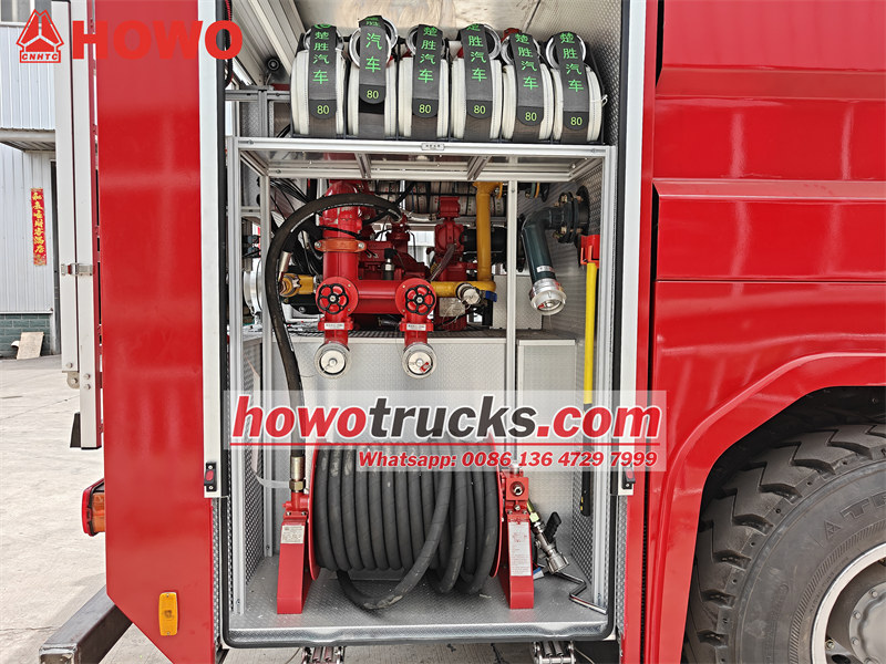 Το κορυφαίο κινεζικό πυροσβεστικό όχημα Sinotruk HOWO Water Foam Fire Truck είναι ένα επαγγελματικό πυροσβεστικό όχημα κατασκευασμένο σε πλαίσιο φορτηγού εκτός δρόμου HOWO 4×4, με κινητήρα ντίζελ WEICHAI 400HP και χειροκίνητο κιβώτιο ταχυτήτων HW19710. Το πυροσβεστικό όχημα HOWO είναι εξοπλισμένο με δεξαμενή νερού 6000L και δεξαμενή αφρού 2000L, όλα κατασκευασμένα από ανοξείδωτο χάλυβα #304. Είναι τοποθετημένο με πυροσβεστική αντλία CB10/60 και σύστημα παρακολούθησης πυρκαγιάς αφρού νερού PL8/48, με αποτελεσματική απόσταση εκτόξευσης άνω των 65 μέτρων. Η προσαρμοσμένη καμπίνα διπλής σειράς φιλοξενεί έξι άτομα και περιλαμβάνει κλιματισμό και ηλεκτρονικές συσκευές, εξισορροπώντας την αποτελεσματικότητα της πυρόσβεσης με την άνεση λειτουργίας, καθιστώντας την ιδανική επιλογή για την αντιμετώπιση διαφόρων σεναρίων πυρκαγιάς σε αστικές περιοχές.