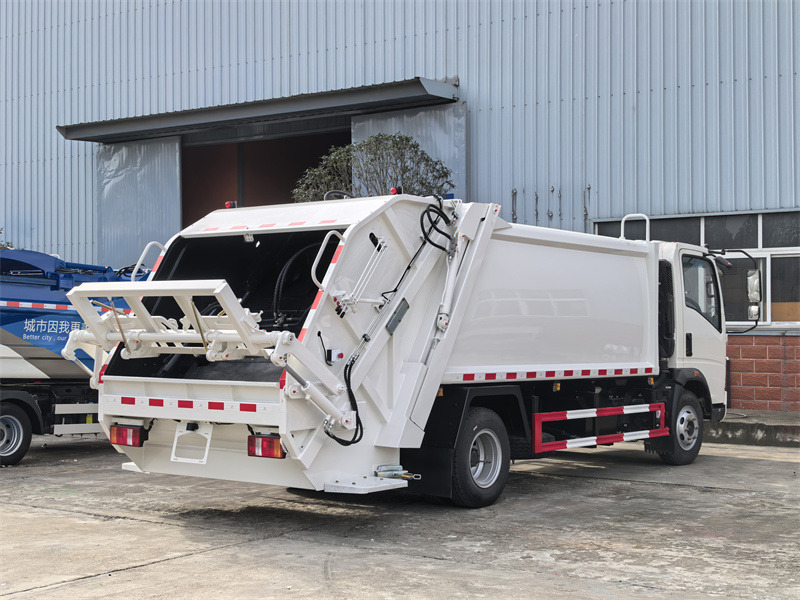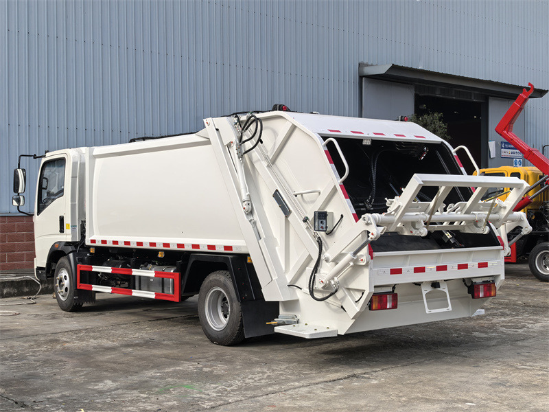Το συμπιεστικό φορτηγό απορριμμάτων Howo 4x2 8 κυβικών μέτρων χρησιμοποιεί ένα πλαίσιο ελαφρού φορτηγού Sinotruk Howo με μεταξόνιο 3800 mm. Είναι εξοπλισμένο με κινητήρα Cummins ISF3.8s3141 και κιβώτιο ταχυτήτων WLY6TS55. Ο άνω κάδος απορριμμάτων έχει τοξοειδή σχεδίαση, είναι κατασκευασμένος από ανθρακούχο χάλυβα με πλευρές πάχους 4 mm και πάτο πάχους 5 mm και έχει υποστεί επεξεργασία για την πρόληψη της διάβρωσης και της σκουριάς. Διαθέτει κάδο ανακλινόμενου τύπου στο πίσω μέρος και μπορεί να τοποθετηθεί με τυπικούς κάδους απορριμμάτων 110L και 240L. Το σύστημα ελέγχου CAN-BUS επιτρέπει τη συλλογή, τη συμπίεση και την εκφόρτωση των απορριμμάτων μέσω ενός ηλεκτρικού κιβωτίου ελέγχου στην καμπίνα, μιας υδραυλικής βαλβίδας ελέγχου στην πλευρά του οδηγού, ενός ηλεκτρικού κιβωτίου ελέγχου στην αριστερή πλευρά της πίσω πόρτας και ενός χειροκίνητου μοχλού λειτουργίας στη δεξιά πλευρά.