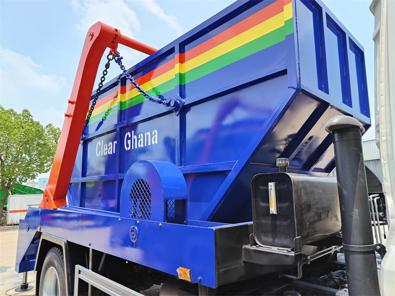 Το απορριμματοφόρα Howo 6x4 roll on roll off είναι εξοπλισμένο με ανθεκτική πλατφόρμα και πάχος 8 mm, με ταιριαστούς ισχυρούς βραχίονες περιστροφής για βαριά διαδικασία ανύψωσης και πτώσης κάδων, στο πίσω μέρος της πλατφόρμας καταστρώματος skip είναι εξοπλισμένο με υδραυλικό γάντζο, το οποίο μπορεί να χρησιμοποιηθεί για να κλειδώσει και να ξεκλειδώσει ο κάδος, και στη συνέχεια να πραγματοποιήσει τη λειτουργία του κάδου, ο οποίος είναι διαθέσιμος για τοποθέτηση στο έδαφος για τη συλλογή σκουπιδιών σε σταθερή θέση. Μπορεί επίσης να χρησιμοποιηθεί για την απόρριψη σκουπιδιών όταν βρίσκεστε σε σταθμό απορριμμάτων. Τόσο η χειροκίνητη υδραυλική βαλβίδα ελέγχου όσο και το ηλεκτρικό κιβώτιο ελέγχου είναι εξοπλισμένα για να εγγυώνται πιο αποτελεσματική και εύκολη χρήση.