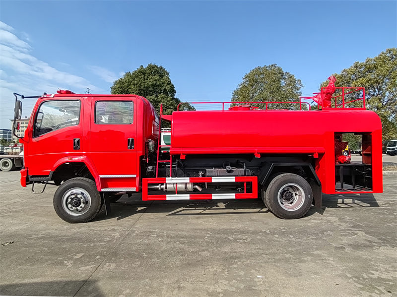Το βυτιοφόρο νερού HOWO 4X4 Rescue Fire είναι ένα επαγγελματικό πυροσβεστικό όχημα σχεδιασμένο για να ανταποκρίνεται σε καταστάσεις έκτακτης ανάγκης πυρκαγιάς. Είναι εξοπλισμένο με πλαίσιο HOWO 4X4 και μπορεί να φιλοξενήσει 3+3 επιβάτες. Εξοπλισμένο με κινητήρα ISF3.8S3154, η ισχύς εξόδου φτάνει τους 154 ίππους, καλύπτοντας τις ανάγκες ισχύος του πυροσβεστικού οχήματος HOWO 4X4 Rescue. Το πυροσβεστικό όχημα Howo υιοθετεί τα πρότυπα εκπομπών EURO Level 6 και οι εκπομπές είναι καθαρές και φιλικές προς το περιβάλλον. Εξοπλισμένο με ελαστικά 8.25R16 για να εξασφαλίζει σταθερή οδήγηση σε καταστάσεις έκτακτης ανάγκης. Όσον αφορά την απόδοση πυροπροστασίας, το πυροσβεστικό όχημα εκτός δρόμου Howo έχει χωρητικότητα δεξαμενής νερού 6000 λίτρων. Είναι εξοπλισμένο με πυροσβεστική αντλία CB10/40 XZ και πυροσβεστικό κανόνι PS40 και μπορεί να παρέχει 36L/S@1.0MPa. Με ονομαστικό ρυθμό ροής 32L/S@2.0MPa και εμβέλεια άνω των 45 μέτρων, εξασφαλίζει αποτελεσματικές επιχειρήσεις κατάσβεσης πυρκαγιάς.