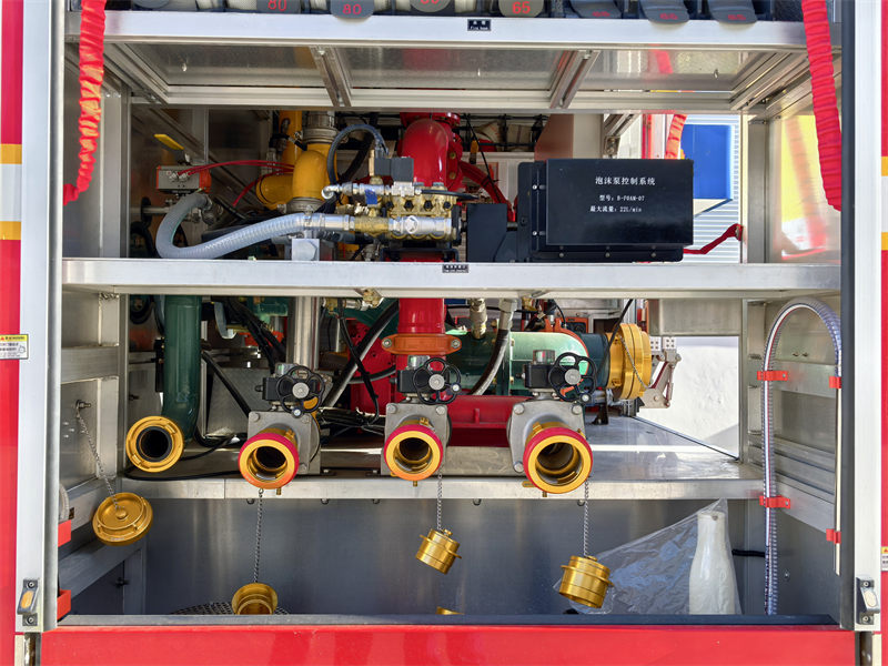 3. Αμάξωμα βυτιοφόρου:Προσαρμοσμένο για πυροσβεστικό μέσο νερού + αφρού + ξηρής σκόνης