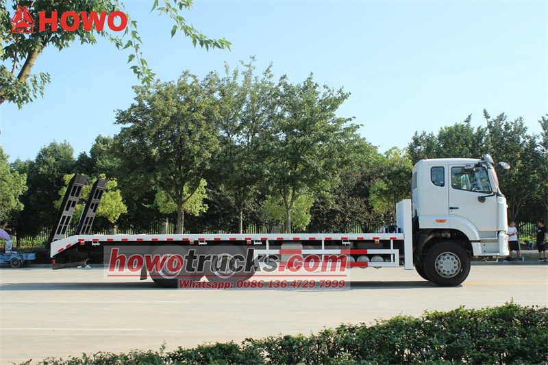 18000(2 axles)Ο Φορτηγό αυτοφόρτωσης HOWO NX 20 τόνων είναι ένα εξειδικευμένο όχημα σχεδιασμένο για τη μεταφορά βαρέος εξοπλισμού. Εξοπλισμένο με εξειδικευμένο σύστημα υπερκατασκευής και υδραυλικού ελέγχου, επιτρέπει την ταχεία φόρτωση και εκφόρτωση και την αποτελεσματική μεταφορά. Με κινητήρα Weichai 400 ίππων και κιβώτιο ταχυτήτων Sinotruk 10 ταχυτήτων, διαθέτει ισχυρή και αξιόπιστη ισχύ. Η υπερκατασκευή του αποτελείται από μια στιβαρή χαλύβδινη πλάκα με καρότσα μήκους 7,5 μέτρων και πάχους 8 χιλιοστών, παρέχοντας εξαιρετική φέρουσα ικανότητα. Τα βασικά χαρακτηριστικά περιλαμβάνουν ένα βαρούλκο 45 μέτρων και 20 τόνων, μπροστινά υδραυλικά υποστηρίγματα και μια μηχανική ράμπα ελατηρίων 2,2 μέτρων στο πίσω μέρος. Τα πίσω υδραυλικά υποστηρίγματα ελέγχονται κεντρικά από το πίσω μέρος του οχήματος, εξασφαλίζοντας υψηλή λειτουργική απόδοση.