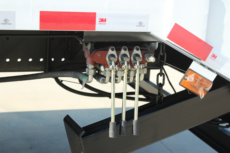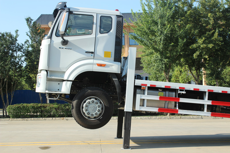 ◇Υδραυλικά υποστηρίγματα: Το όχημα είναι εξοπλισμένο με δύο υδραυλικά υποστηρίγματα μεγάλης χωρητικότητας στο μπροστινό μέρος. Χαμηλώνουν κατά τη διάρκεια των εργασιών φόρτωσης και εκφόρτωσης για να παρέχουν σταθερή μπροστινή στήριξη στο όχημα, αποτρέποντας την κλίση του μπροστινού μέρους του οχήματος και εξασφαλίζοντας μια ασφαλή και ομαλή διαδικασία φόρτωσης και εκφόρτωσης.