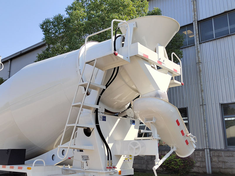 3. Δεξαμενή ανάμειξης: Το τύμπανο ανάμειξης είναι ένα βασικό εξάρτημα ολόκληρου του φορτηγού αναμικτήρα σκυροδέματος. Λειτουργεί ως δοχείο αποθήκευσης σκυροδέματος και παίζει κρίσιμο ρόλο στην πρόληψη της στερεοποίησης και του διαχωρισμού του σκυροδέματος. Οι λεπίδες μέσα στη δεξαμενή χρησιμεύουν κυρίως για την ανάδευση και την καθοδήγηση του σκυροδέματος.