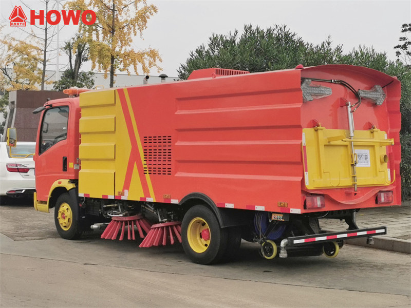 Φορτηγό σκούπας HOWO ελαφρού τύπου 4x2 τοποθετημένο σε φορτηγό, εξοπλισμένο με τον κινεζικό κινητήρα ντίζελ YUNNEI μοντέλο YN4102QBZL, 116HP με εκπομπές 3760cc, για να καλύψει τις απαιτήσεις εξάτμισης της αφρικανικής αγοράς. Χειροκίνητο κιβώτιο ταχυτήτων μοντέλου WLY 6 ταχυτήτων με 6 εμπρός και 1 πίσω, κατάλληλο για καθημερινή οδήγηση. Το τυπικό μεταξόνιο είναι 3360mm, ταιριασμένο με ελαστικά 7.00R16, πολύ κατάλληλο και ισχυρότερο για κανονική εργασία. Τα σάρωθρα καθαρισμού δρόμων HOWO είναι προσαρμοσμένα με βυτιοφόρο νερού καθαρισμού 1000L και βυτιοφόρο σκόνης 4000L, όλα βασισμένα σε υλικό ανοξείδωτου χάλυβα #304, επίσης φορτηγό καθαρισμού δρόμων HOWO εξοπλισμένο με ηλεκτρικό κιβώτιο ελέγχου PLC στην καμπίνα, το οποίο μπορεί να κάνει όλες τις εργασίες με ένα κουμπί, ασφαλείς και βολικές.