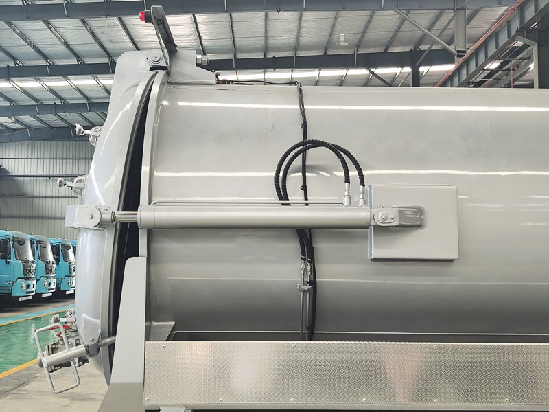 ●Το όχημα είναι εξοπλισμένο με υδραυλικό σύστημα εκκένωσης που ανατρέπει ολόκληρη τη δεξαμενή για πλήρη εκκένωση και έκπλυση, μειώνοντας τα υπολείμματα και διατηρώντας ένα καθαρό εσωτερικό. Ολόκληρη η διαδικασία είναι σφραγισμένη, αποτρέποντας τη δευτερογενή μόλυνση και την εξάπλωση οσμών, εξασφαλίζοντας ένα καθαρό και υγιεινό εργασιακό περιβάλλον.