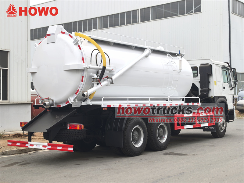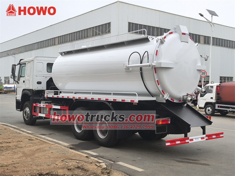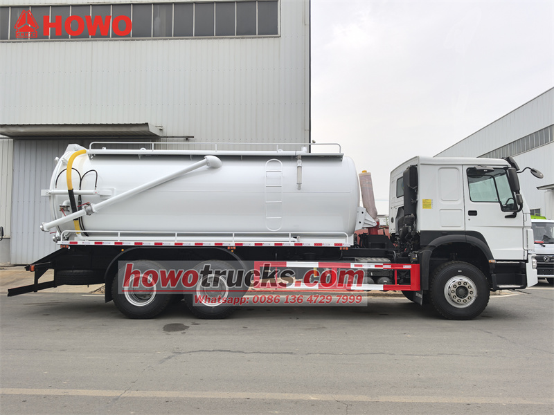 Το φορτηγό αναρρόφησης λυμάτων HOWO 6x4 15 cbm είναι τροποποιημένο στο πλαίσιο καμπίνας HOWO HW76. Μεταξόνιο 4600+1350 mm, εξοπλισμένο με κινητήρα Weichai WP10.340E22 και κιβώτιο ταχυτήτων Sinotruk HW19710 10 ταχυτήτων. Το άνω σώμα είναι μια δεξαμενή λυμάτων 15 cbm, από ανθρακούχο χάλυβα, πάχους 5 mm. Η δεξαμενή μπορεί να ανυψωθεί και η πίσω πόρτα να ανοίξει με αντλία κενού Jurop PN106D με ρυθμό ροής 11.000 L/min. Το όχημα είναι επίσης εξοπλισμένο με σωλήνα θέασης, σκάλα, βαλβίδα εκκένωσης πίσω πόρτας και χειροκίνητο υδραυλικό μοχλό λειτουργίας στην πλευρά του οδηγού (για τον έλεγχο του ανοίγματος/κλεισίματος της πίσω πόρτας και της ανύψωσης/κατεβάσματος της δεξαμενής).